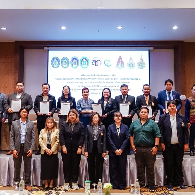 ร่วมลงนามบันทึกข้อตกลงความร่วมมือดำเนินโครงการขยายผลการถ่ายทอดองค์ความรู้การผลิตแมลงโปรตีน BSF ภาพกิจกรรม ร่วมลงนามบันทึกข้อตกลงความร่วมมือดำเนินโครงการขยายผลการถ่ายทอดองค์ความรู้การผลิตแมลงโปรตีน BSF