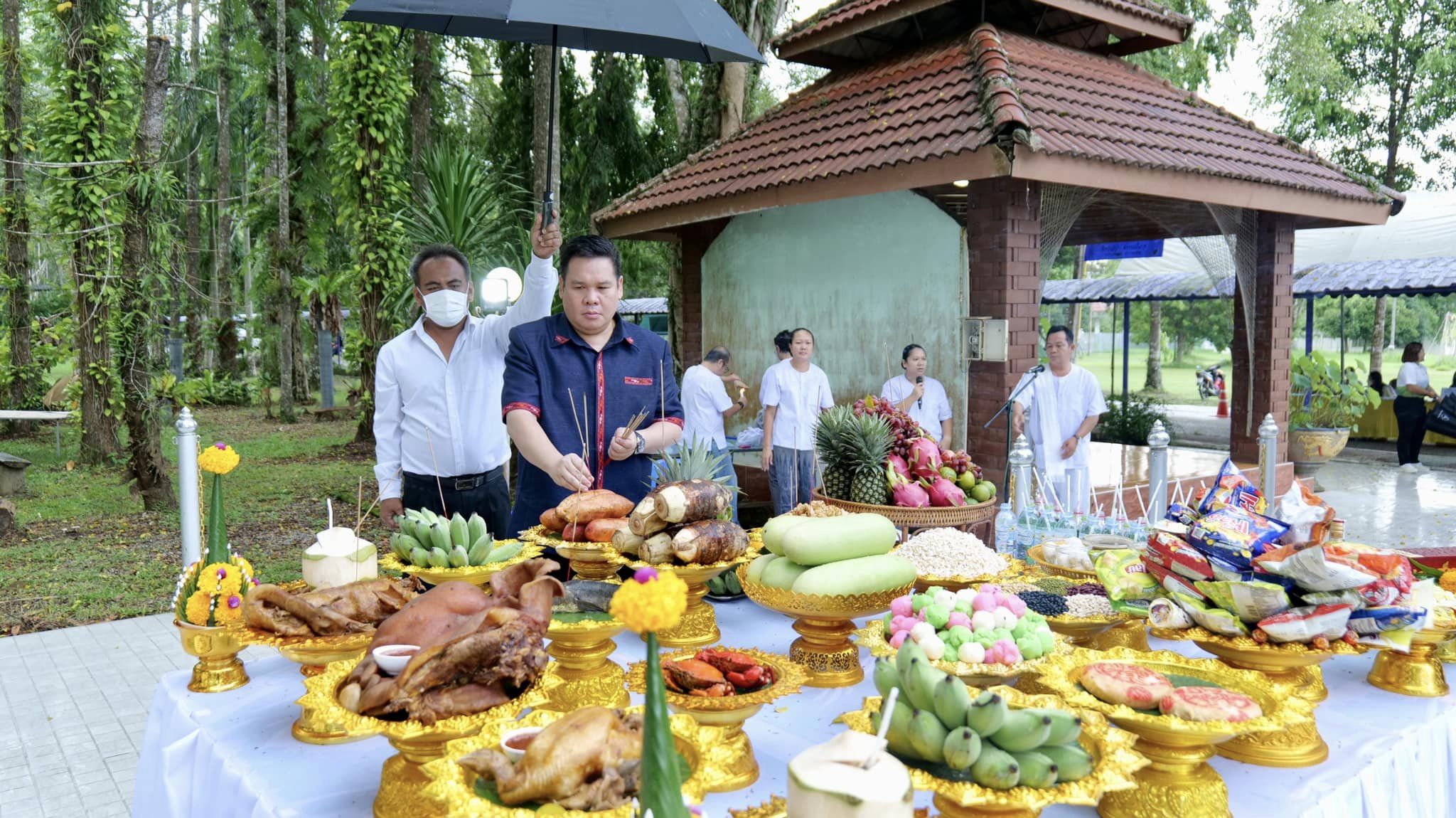 จากนั้น ในเวลา 10.00 น. ผู้บริหาร คณาจารย์ บุคลากร และศิษย์เก่าร่วมกันทำบุญถวายภัตตาหารเพล พร้อมจตุปัจจัยไทยธรรมแด่พระสงฆ์ จำนวน 9 รูป ณ อาคารศูนย์นวัตกรรมธุรกิจจันทบุรี
