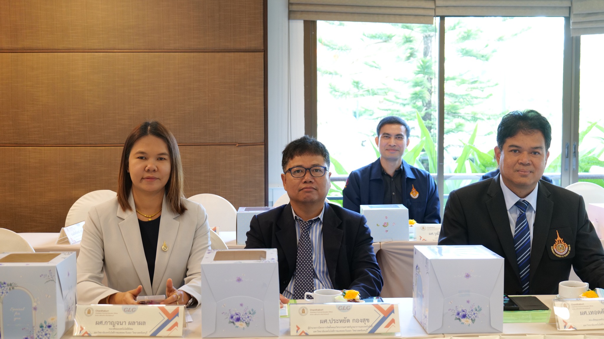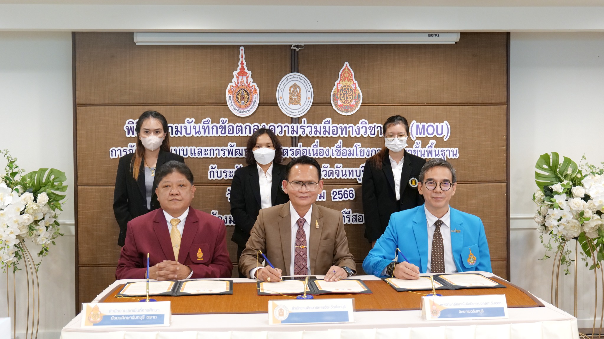 ผศ.ดร.คณาธิป จิระสัญญาณสกุล รองอธิการบดี มทร.ตะวันออก พร้อมด้วย ผศ.ดร.เทอดศักดิ์ ปุระมงคล คณบดีคณะเทคโนโลยีอุตสาหกรรมการเกษตร ผศ.กาญจนา ผลาผล คณบดีคณะเทคโนโลยีสังคม ผศ.ดร.ประหยัด กองสุข ผอ. โครงการจัดตั้งคณะวิศวกรรมศาสตร์ฯ ผศ.ดร.บุณฑริกา สุมะนา ผู้ช่วยอธิการบดี และคณะผู้บริหาร มทร.ตะวันออก วิทยาเขตจันทบุรี เข้าร่วมพิธีลงนามบันทึกข้อตกลงความมือทางวิชาการ (MOU) การจัดทำรูปแบบและการพัฒนาหลักสูตรต่อเนื่องเชื่อมโยงการศึกษาขั้นพื้นฐานกับระดับอุดมศึกษา จังหวัดจันทบุรี กับสำนักงานศึกษาธิการจังหวัดจันทบุรี และสำนักงานเขตพื้นที่การศึกษามัธยมศึกษา จันทบุรี ตราด (สพม.) ภายใต้โครงการส่งเสริมเวทีและประชาคมเพื่อการจัดทำรูปแบบและการพัฒนาหลักสูตรต่อเนื่องเชื่อมโยงการศึกษาขั้นพื้นฐานกับอาชีวศึกษาและอุดมศึกษา ปีงบประมาณ พ.ศ. 2566 ณ โรงแรมมณีจันทร์รีสอร์ท