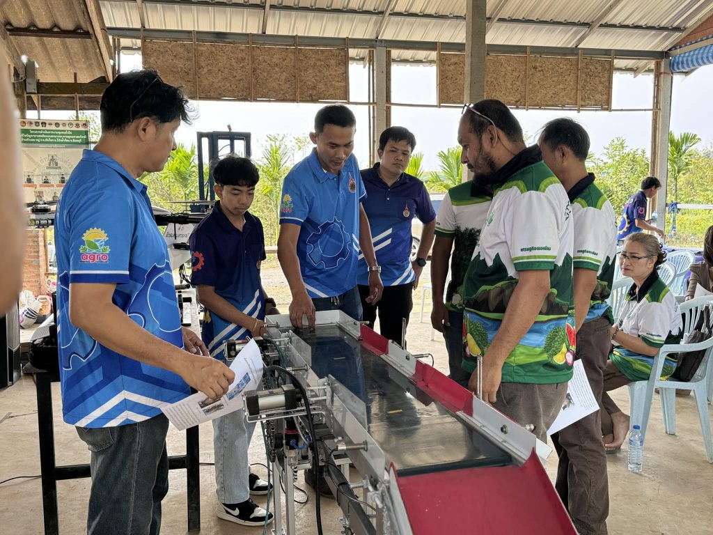 ติดตามผลการดำเนินการบริการวิชาการ และอบรมบริการวิชาการ เครื่องคัดขนาดผลไม้ เครื่องปอกเปลือกมะพร้าว และสาธิตการบินโดรน ณ กลุ่มเกษตรกรวิสาหกิจชุมชนเกษตรกรรุ่นใหม่พัฒนา