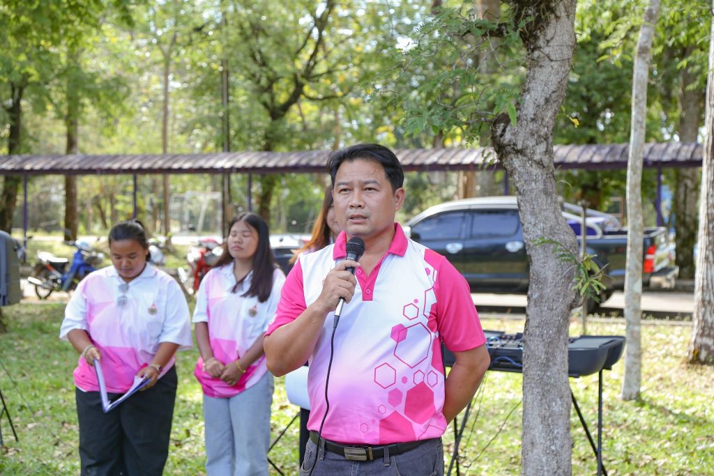 คณบดีคณะเทคโนโลยีอุตสาหกรรมการเกษตร กล่าวให้โอวาทแก่นักศึกษา ก่อนเดินทางไปแข่งขันพะยอมเกมส์ ครั้งที่ 16